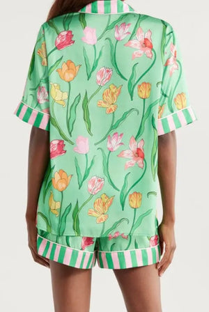 Tulips Green Short Sleeve Satin Pyjama Set (BF AW25)