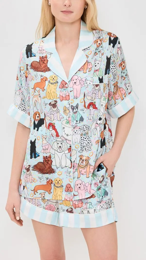 Dog Wedding Short Sleeve PJ Set Blue Poly (BF AW25)