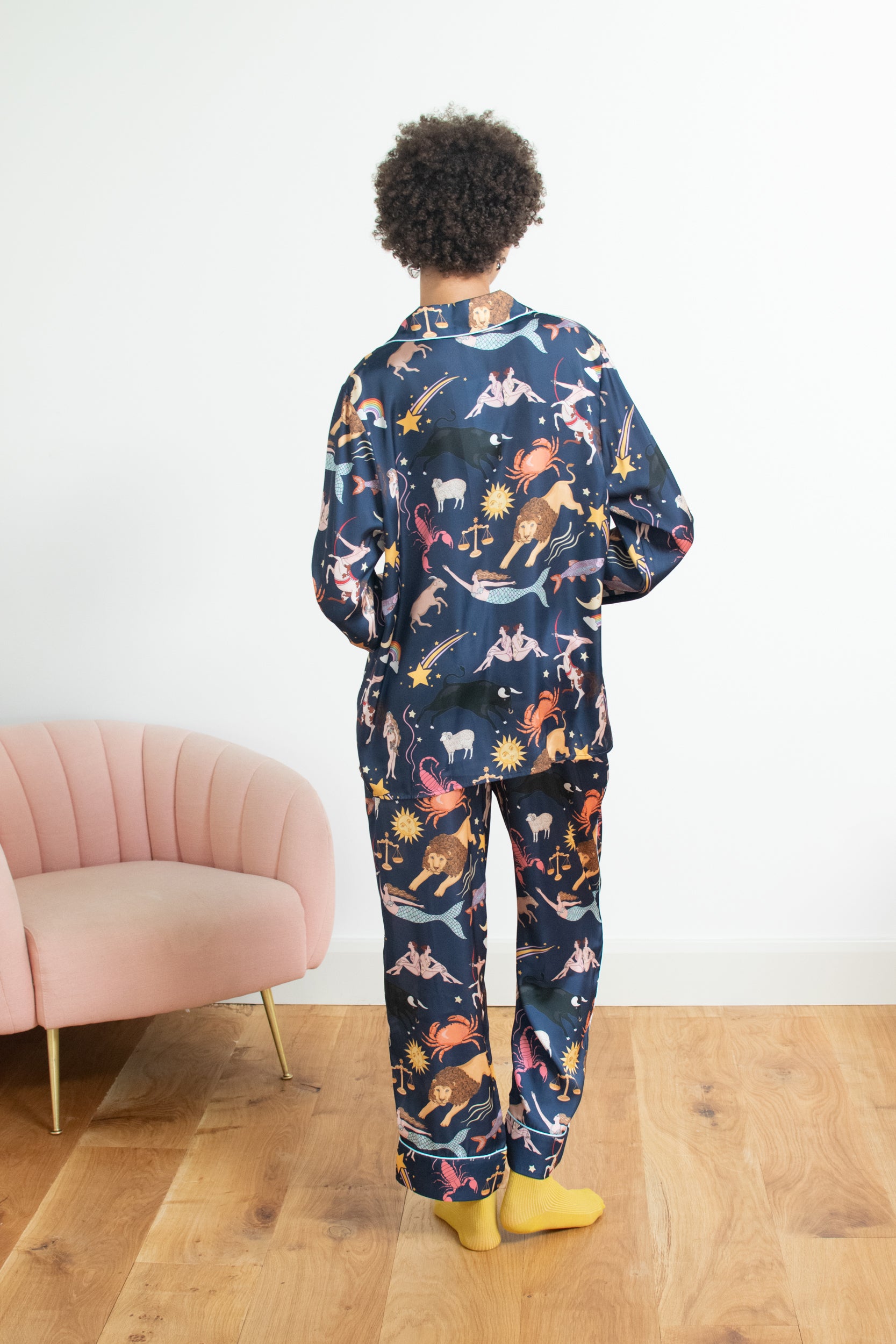 Zodiac Poly Satin Pyjama Set | Navy