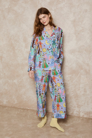 Crafted from soft, breathable cotton, this long sleeve and long leg pyjama set is designed for comfort with character. Bold, expressive, and unapologetically bonkers, it is a print for anyone who enjoys a little spectacle in their sleepwear.
