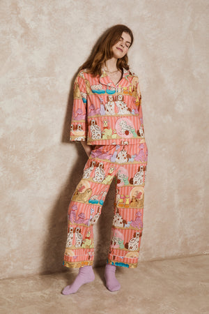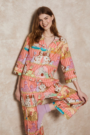 Crafted from soft, breathable cotton, this long leg pyjama set features a relaxed swing sleeve silhouette for easy comfort and everyday wear. Cheerful, nostalgic, and just the right amount of kitsch, it is a set that manages to feel both cosy and full of conversation.